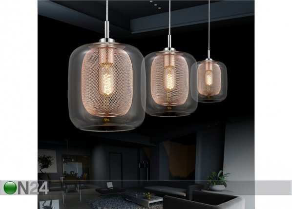 Riippuvalaisimen teho enintään 1×60 W, kanta E27 – kuvussa on kuparin sävyistä verkkoa… Lue lisää »